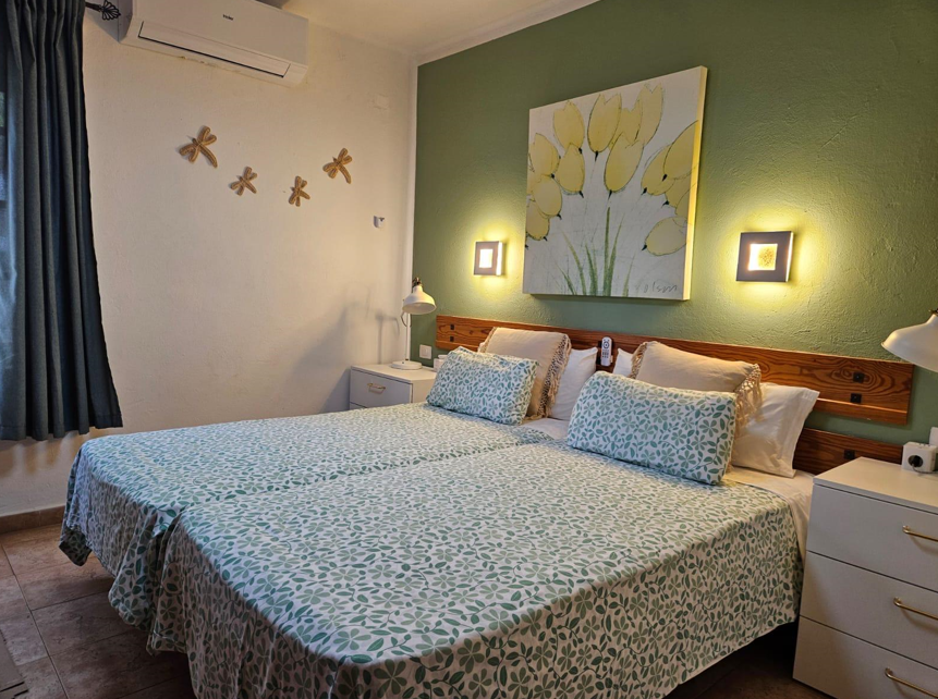 Su distribución incluye salón, cocina, baño y dos dormitorios, ambos con camas individuales. Situada en un lugar excepcional cerca de la piscina, la hace el lugar ideal para aquellos que les gusta disfrutar del sol y de un baño refrescante.