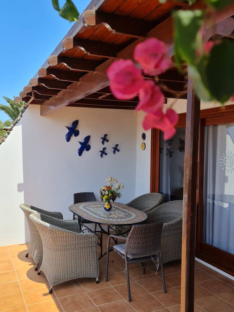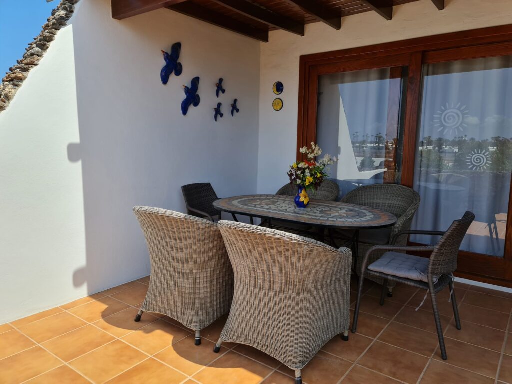 Esta vivienda se encuentra en una zona tranquila dentro del complejo Casas del Sol, a solo unos minutos caminando del paseo marítimo y de la zona comercial de Playa Blanca.
