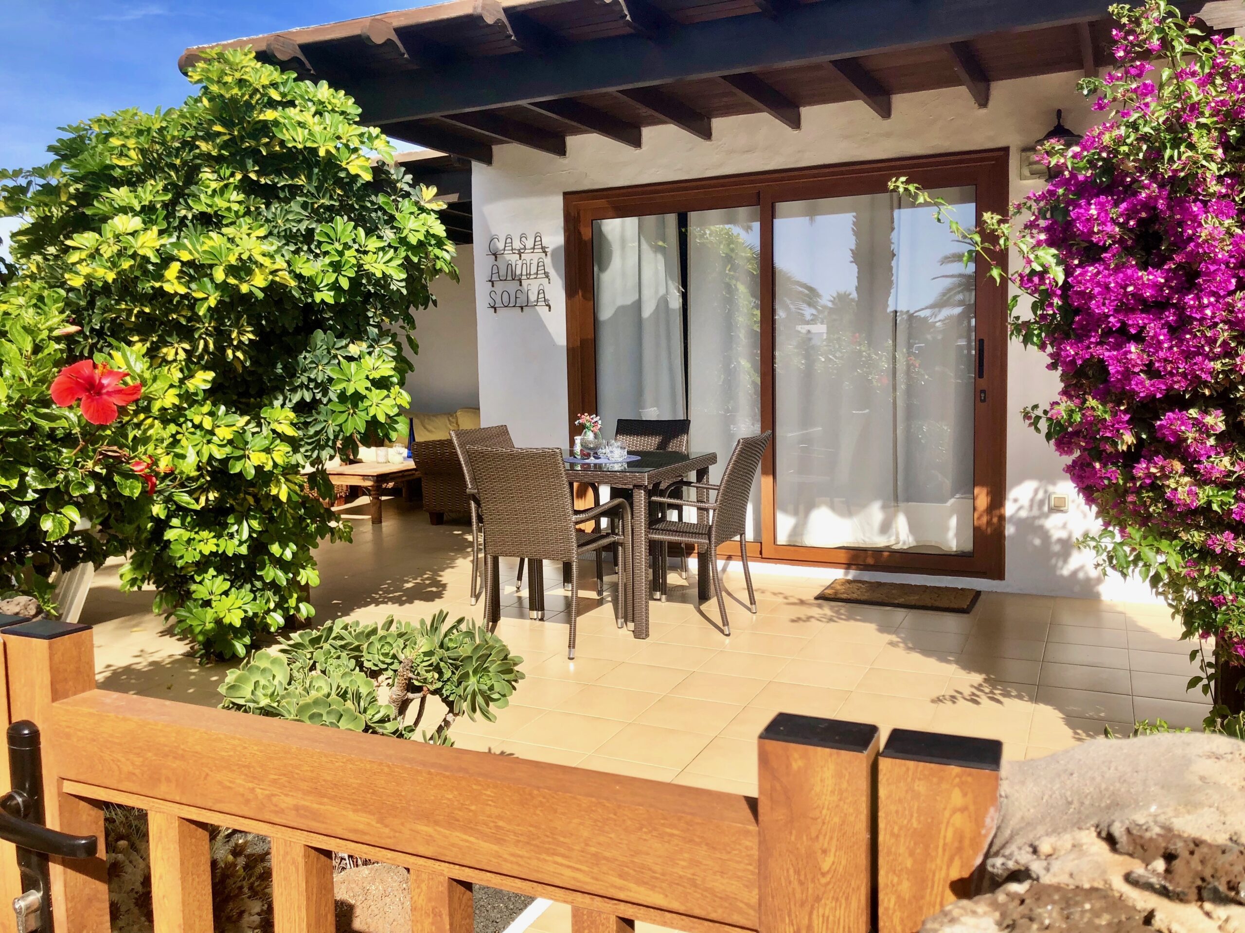 Esta vivienda se encuentra en una zona tranquila dentro del complejo Casas del Sol, a solo unos minutos caminando del paseo marítimo y de la zona comercial de Playa Blanca.